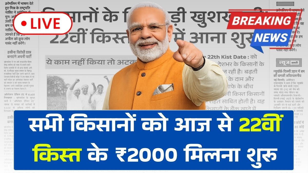 सभी किसानों को आज से 22वीं किस्त के ₹2000 मिलना शुरू, ऐसे लाइव चेक करें स्टेटस : PM Kisan 22th Kist