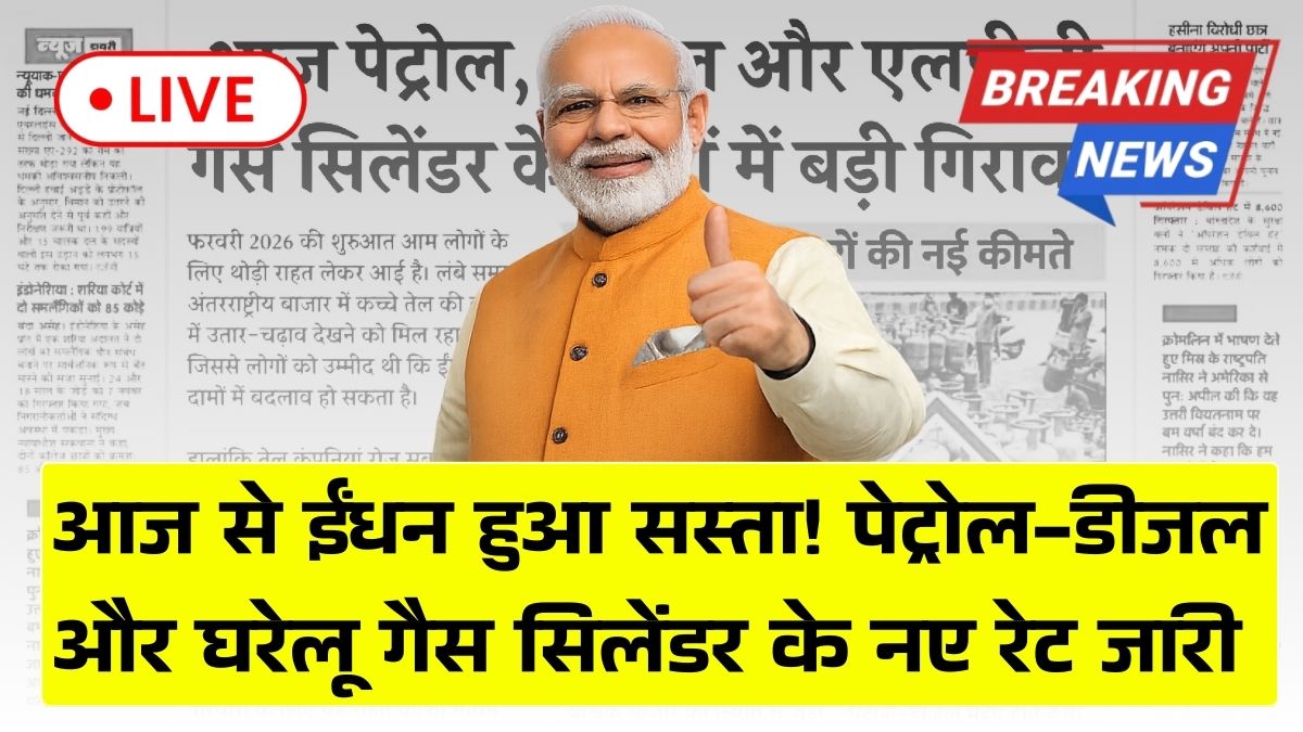 पेट्रोल-डीजल और LPG गैस की नई दरें जारी: फरवरी 2026 में आम जनता को बड़ी राहत, जानें ताज़ा अपडेट Petrol Diesel LPG Gas Price